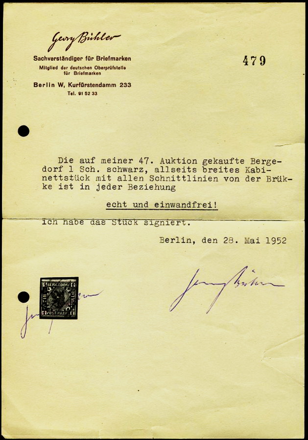 Atteste mit der Anschrift Juttastraße sind nicht von Georg Bühler selbst verfasst worden, Stücke mit solchen Attesten sollten NUR UNTER VORBEHALT DER NACHPRÜFUNG erworben werden - im Regelfall wird man wohl enttäuscht werden!