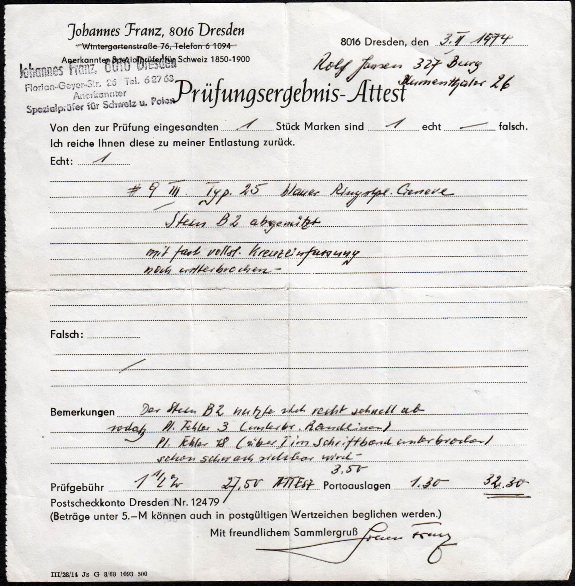 gefunden auf Schweiz Rayon I blau mit Typenbestimmung in Bleistift