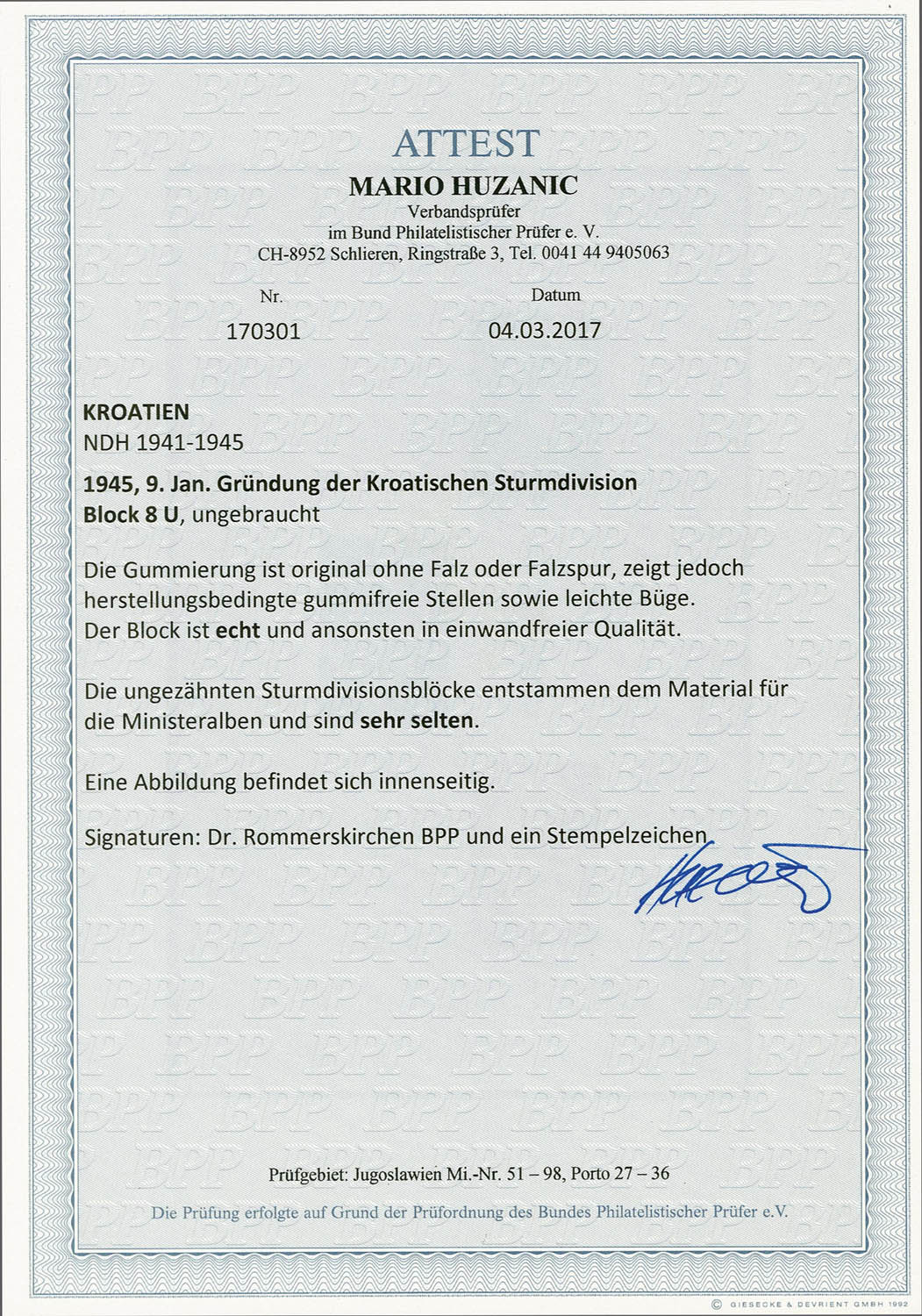 Sie haben Briefmarken aus den Sammelgebieten sog. NDH Kroatien 1941-45 inkl. Dienstmarken, Portomarken, Zwangszuschlagsmarken, Lokalausgabe Banja Luka, Jugoslawien Mi.-Nr. 1-450 und Porto Mi.-Nr. 1-73 geerbt oder möchten Ihre Sammlung bewerten lassen?