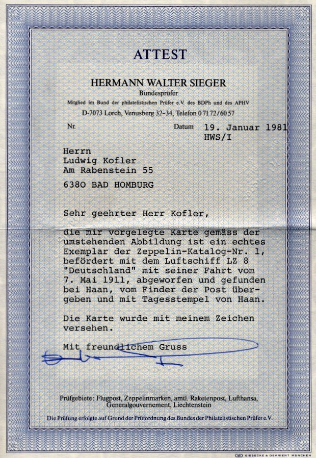 Do you have stamps from German Reich Air Mail 1912 (Michel Nos. I - VI), Generalgouvernement, Liechtenstein, Zeppelinpost, Amtliche Raketenpost, Flugpost Europa and want to get them appraised?
